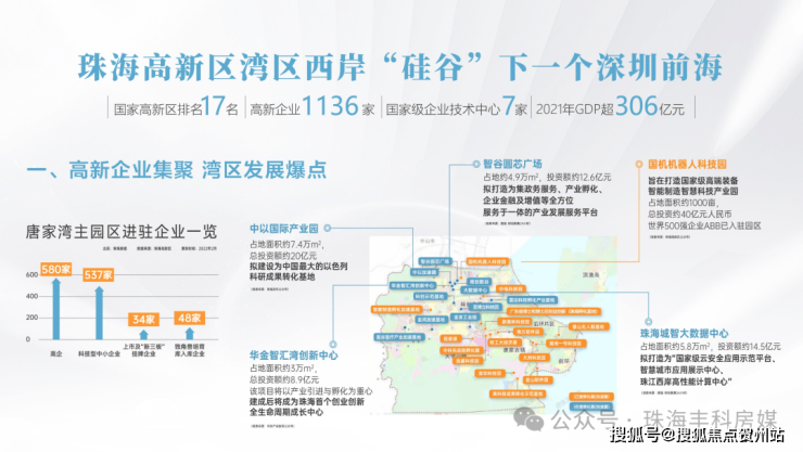 ● 汇聚10大高新产业园、1136家高新技术企业,雄聚国家机器人产业园、智谷圆芯等,将打造为湾区西岸创新“硅谷”,珠海版“前海”