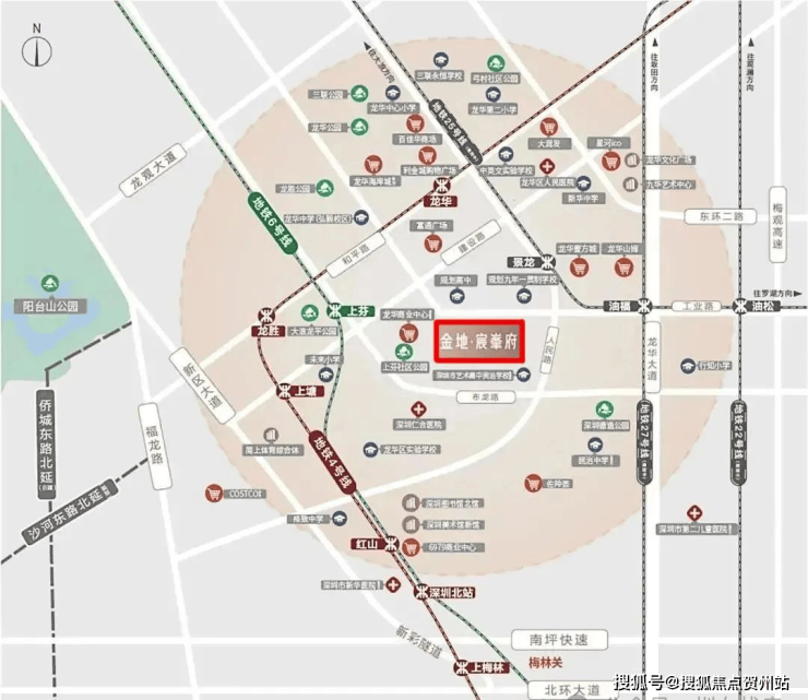 金地启曜,位于深圳龙华区民治街道的交汇处,属于核心商圈和都市核心区。根据《深圳市国土空间总体规划(2021-2035年)》,该区域定位为“双中心”,即南部为都市核心,北部为新一代城市中心。龙华商业中心旧改项目总建面超200万㎡,包括住宅、商业、教育和交通设施,预计2028年建成,将成为深圳最具活力的区域之一。