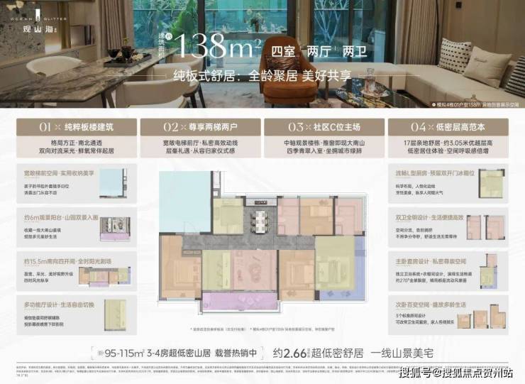 包含12栋住宅楼,涵盖塔楼、板楼结构,主力户型为95-138㎡的3-4居室