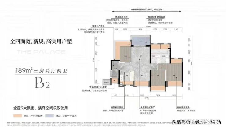 首推一期1栋1单元,面积约89-112㎡ 3-4房,主力产品为89㎡3房,其A1户型为常规经典竖厅,但是在客厅位置多了一个长飘窗,且每个户型都有270度大飘窗。