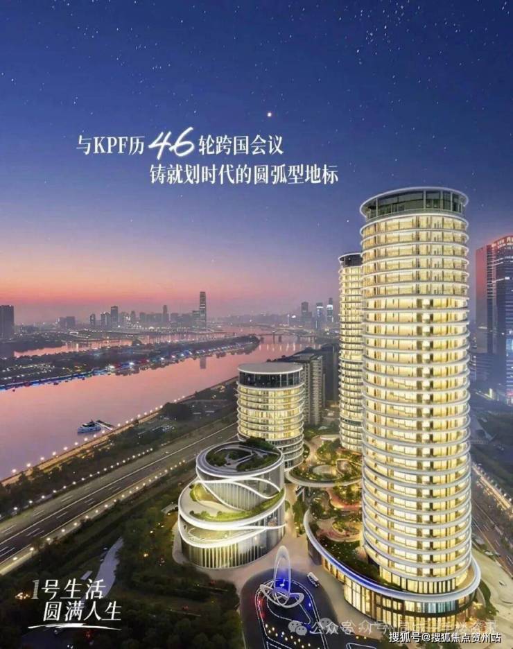 外立面采用弧形铸铝设计,实现270°江景视野;