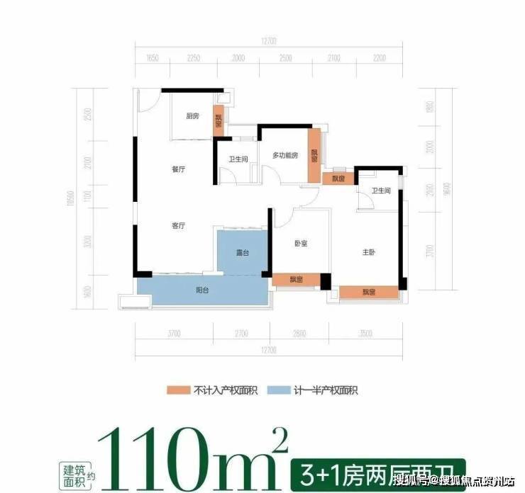 主卧双飘窗+次卧等面宽飘窗,全赠送高拓空间