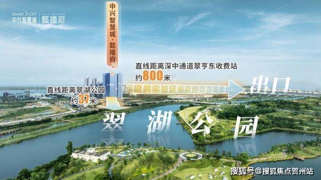 项目距深中通道翠亨东出入口约800米紧邻建设中的南中城际香山站。南中城际香山站与项目楼下的翠湖公园组成“一湖一站”的TOD综合体。