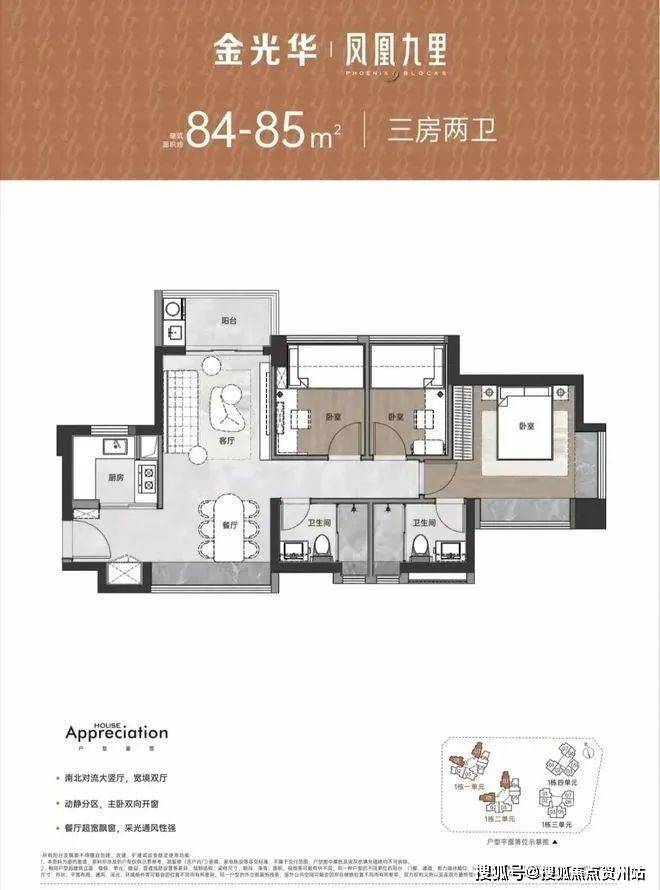 (3)83-85㎡三房两卫:折后280-320万(南北通/东南朝向),(月供1.1万-1.27万);