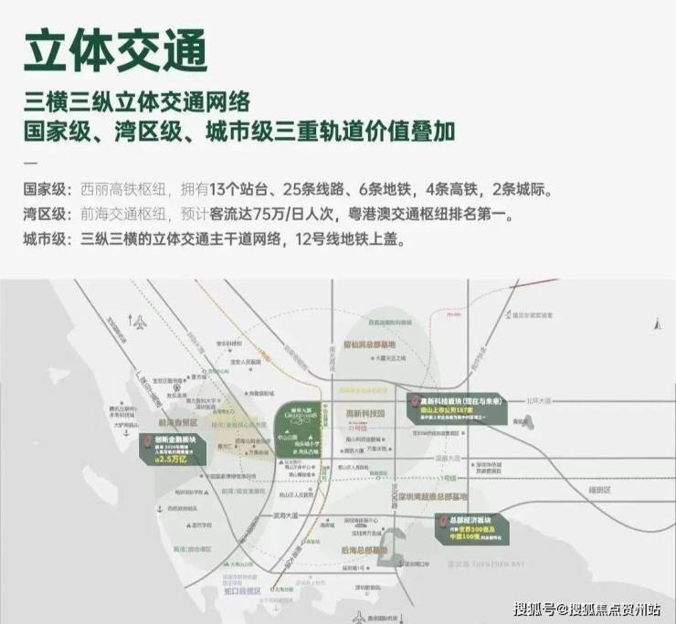 地铁上盖物业,无缝接驳地铁12号线中山公园站,经深南大道、月亮湾大道,直通前海。前海交通枢纽,海、陆、空、轨四维立体交通,畅达粤港澳大湾区各大城市。