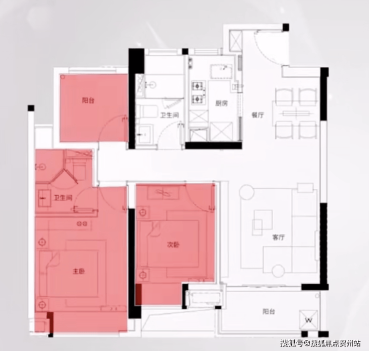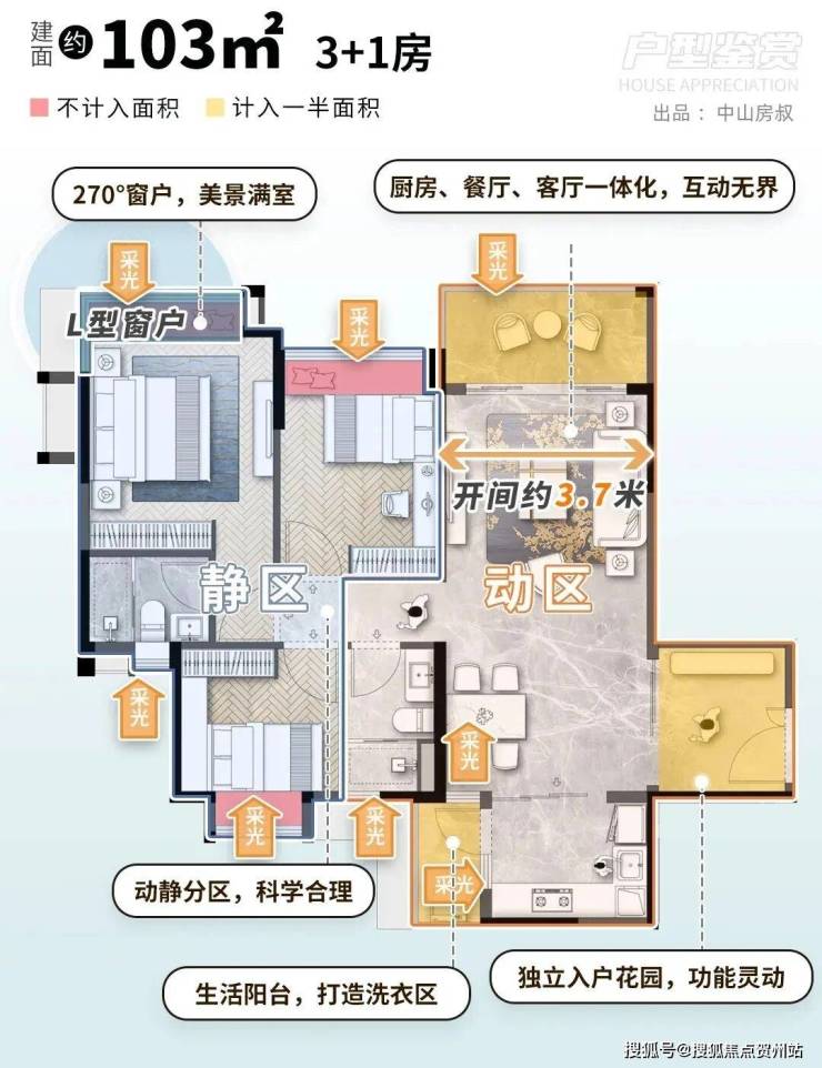 这个户型与120㎡相差不大,但多了个独立入户花园,而且朝北向看小区园林。