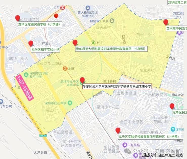 旁边还有龙华区和平中学、简上体育综合体、龙华区未来小学、红山中学,商业周边有上塘荟。