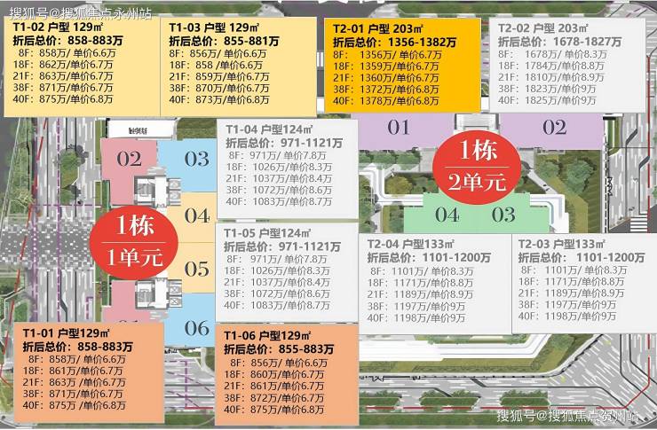 总共主推5条腿,4条129户型、1条203户型,单价接近一口价6.7万/㎡,同时上下层差非常小,以203㎡8F总价1356万,40F1378万就可以拿下,总价才相差22万。