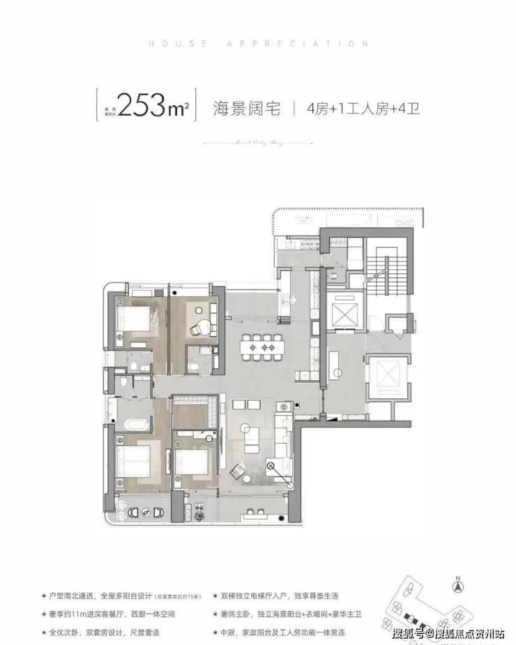 3-4单元为总高53层的商品住宅楼,4梯3户,总计约848户。