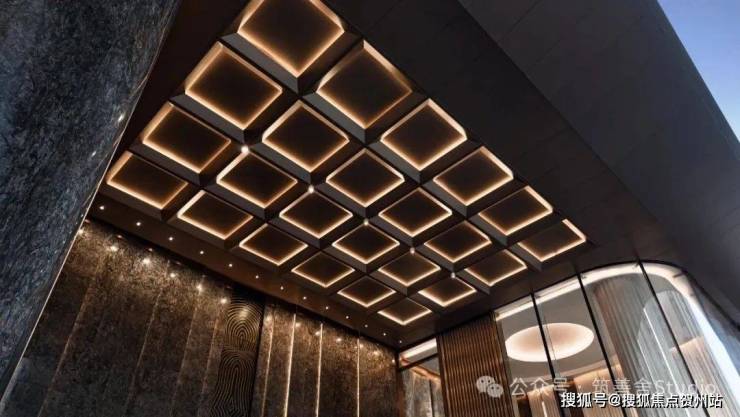 天花板上融入了中国传统建筑之美的「藻井」元素,墙面则铺陈着昂贵而精致的铂金钻奢石,搭配细腻的水波纹纯铜锻造工艺,象征着生命的绵延不绝与财富的汇聚。步入气派非凡的大堂,脚下铺就的是独具匠心的范思哲黑奢石,该石材巧妙运用了两种不同的加工技艺,更显奢华大气。