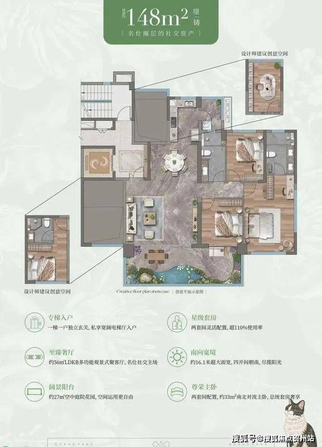 四叶草户型动静分区,静享优雅生活;