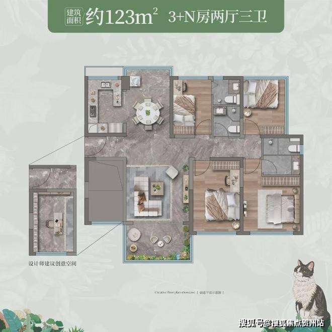 臻铸|约123m² 3+N房3卫(1栋01户型)