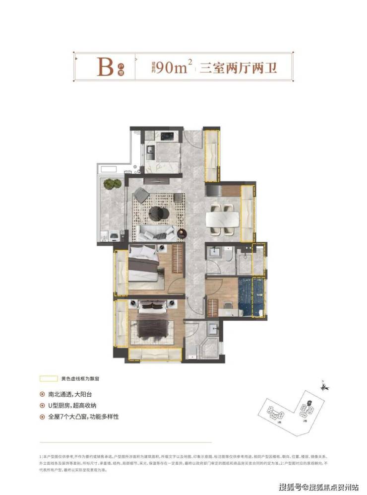 【户型】76㎡3房2厅1卫、90㎡3房2厅2卫;