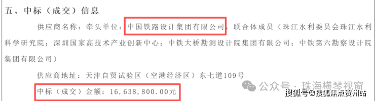 根据公告显示,中标供应商牵头单位为 中国铁路设计集团有限公司,联合体成员( 珠江水利委员会珠江水利科学研究院深圳国家高技术产业创新中心中铁大桥勘测设计院集团有限公司中铁第六勘察设计院集团有限公司)中标,中标(成交)金额为 1663.88万元