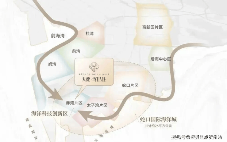 天健湾时代府的开发地块由天健集团于去年 11 月 13 日竞得,当时以 14.35 亿元总价斩获,溢价率达 16.48%,楼面价为 3.76 万 /㎡。项目选址南山招商街道赤湾片区,具体位于赤湾六路与天后宫路交汇处以东,且临近地铁 2 号线赤湾站,作为链接前海与蛇口的板块,交通区位优势显著。