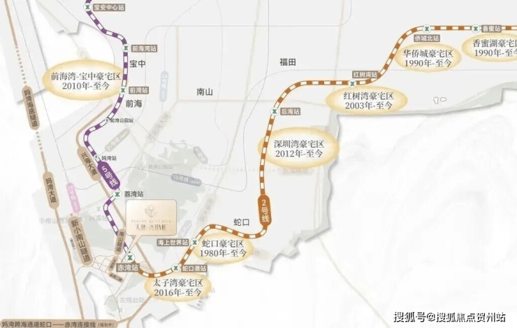 项目距2号线(豪宅线)与5号线(发展线)首发赤湾站约300m(直线距离),从此,坐地铁而不是站地铁,未来新小南山隧道(预计2027年竣工)、望海路升级等重大交通配套持续落地,咫尺间连通蛇口、前海。