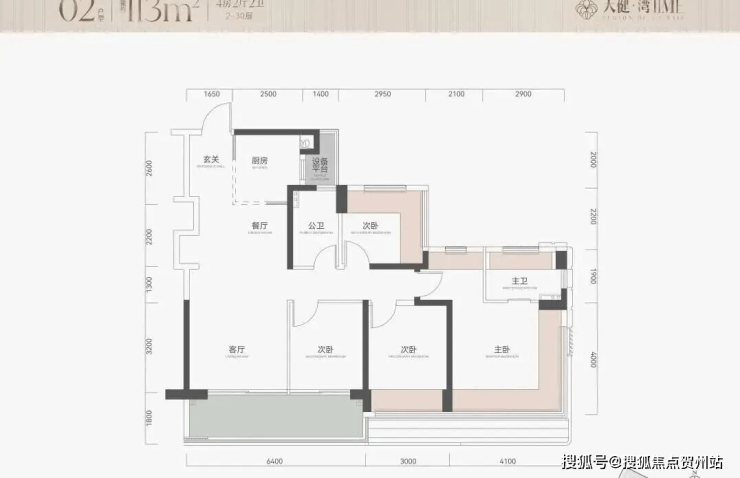 项目规划建设 2 栋 100 米内的 31 层住宅,采用 2 梯 4 户设计,共推出约 290 套房源,户型涵盖 113㎡四房与 139㎡五房,其中 113㎡四房为绝对主力户型。户型朝向以朝南、西南为主,仅两套房源朝东北方向,可直面金众区域。