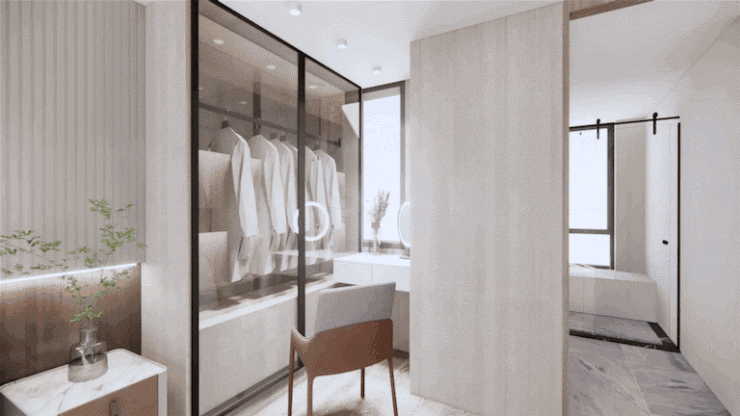 这还是一个百变户型,打通客厅和次卧,能将客厅从约3.2米宽瞬间拓展到约6.2米宽,空间尺度感拉满。