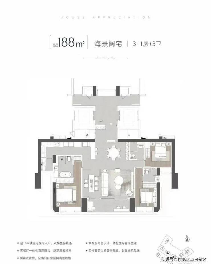 【梯户比】4梯6户(配置横厅、竖厅、双龙抱珠)户型