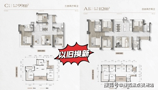 户型价格:主推建面约 99-114㎡的四房两厅两卫产品,得房率高达约 110%。其中,99㎡户型为 3+1 房,有约 35㎡LDKB 厅,可变双套房;112㎡户型户户是端户,有约 28㎡行政级端卧套房。