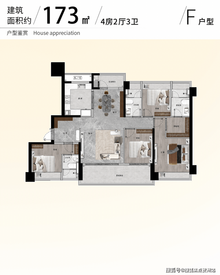 基本信息:位于珠海市香洲区三溪科创城核心区域,球场街与新外街交叉口西北侧。占地约 4.5 万㎡,总建筑面积约 7 万㎡,容积率 3.1,绿化率 35%,总户数 376 户,停车位 483 个,车位配比为 1:1.3。项目规划有 4 栋高层,主打 91-173㎡精装三至五房,还配套有 8600㎡邻里中心与社区公园。