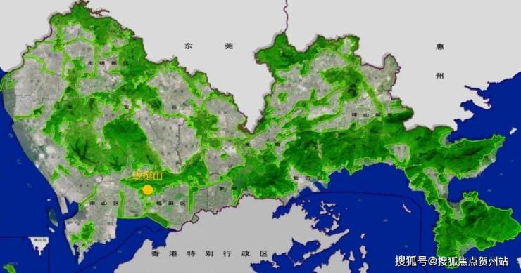 中心区域:深圳山海城中轴,左手香蜜湖、右手华侨城,六大总部基地环伺