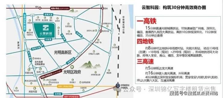 15分钟直通光明城高铁站,可快速接驳广州南、深圳北、福田、香港西九龙四大高铁站,高铁10分钟至深圳北,15分钟至福田,35分钟达香港