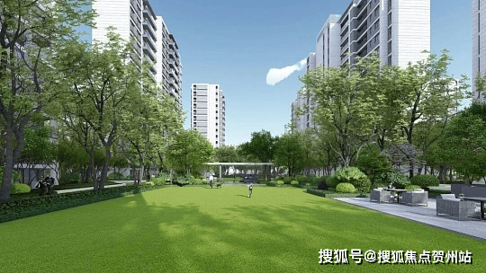 现代简约外立面,社区园林融合绿化与休闲空间,设儿童游乐区、健身区等。