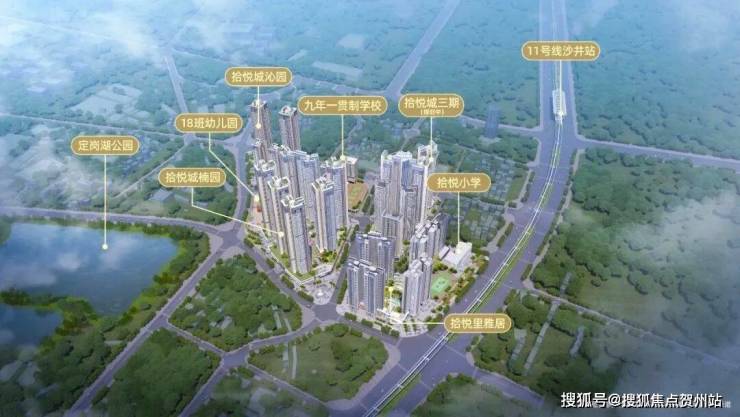 拾悦城二期占地约3.54万㎡,总建面约17万㎡,共规划了14栋30-48层超高层住宅、4栋26-33F高端写字楼及部分商业配套组成,还规划了一所36班九年一贯制学校、一所18班幼儿园。
