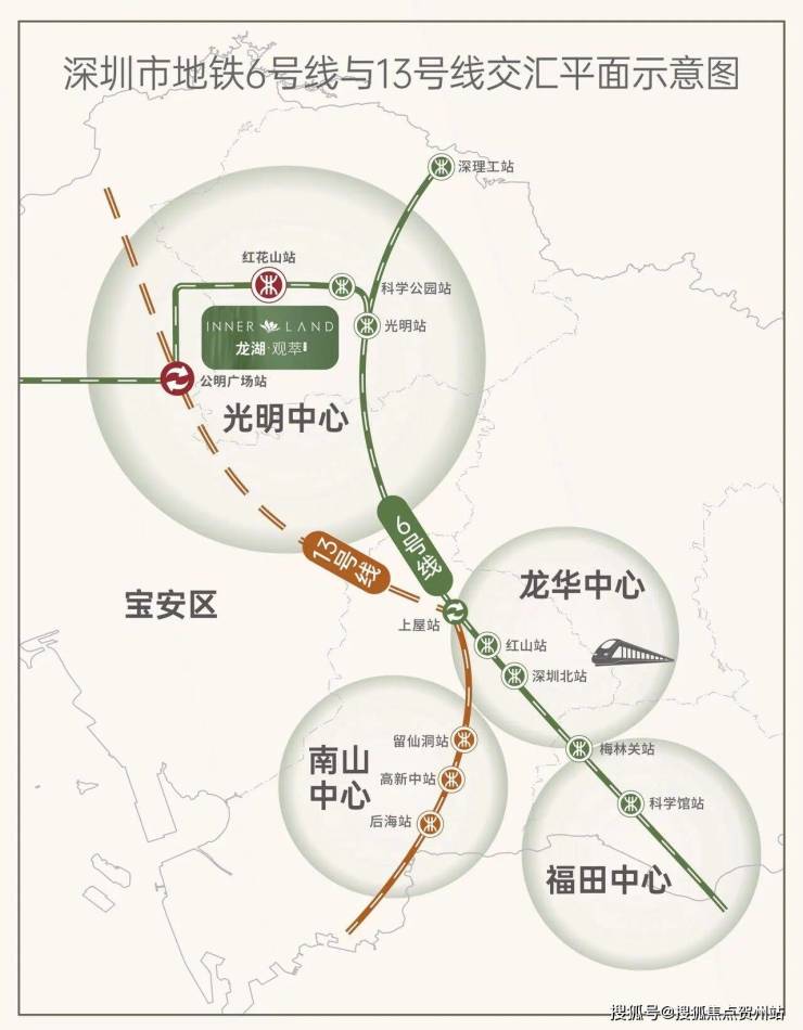 作为光明中心惟一双轨交汇,6号线带领光明融入深圳核心发展脉络,13号线二期(在建中)即将正式通车,将高效接驳南山,加速科创人才及城市资源向中心集聚,执掌光明未来。