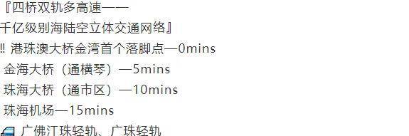花巨资12亿打造,国际赛事球场。在粤港澳大湾区建设加速,珠海城市重心西拓的背景下,政府投资82亿打造6大中心,349万㎡世界级配套的航空新城将成为珠海未来城市中心。而九洲保利天和正位于这片潜力高地的核心地带,毗邻港珠澳大桥延长线落脚点(洪鹤大桥),尽享航空新城爆发式价值兑现。