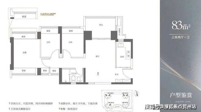 83㎡3房1卫,主卧跟客厅南北通