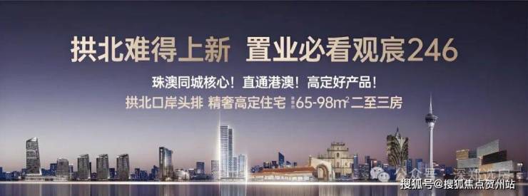 观宸246,位居拱北口岸头排,珠澳同城核心板块,城市中心+口岸物业双极加持,近10年来距离拱北口岸、港珠澳大桥口岸最近的纯住新盘,左手澳门世界级休闲娱乐配套,右手拱北城市烟火生活,坐享醇熟配套,畅享港珠澳三城无界生活。
