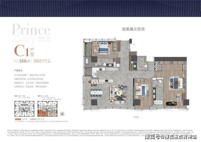 大平面大尺度定位,全户型纵享环幕视野。项目打造主力建面约308-415㎡纯粹品质公寓共191席,顶层为建面约1280㎡公寓产品。