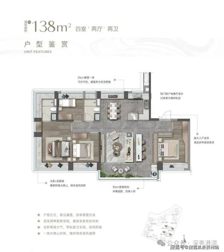 观山海4栋楼王138平米,总层高17层,2梯2户,本次总房源仅64套,今年上半年南山成交第一,销售总额排第二,深圳罕有2.66容积率,超底密山居