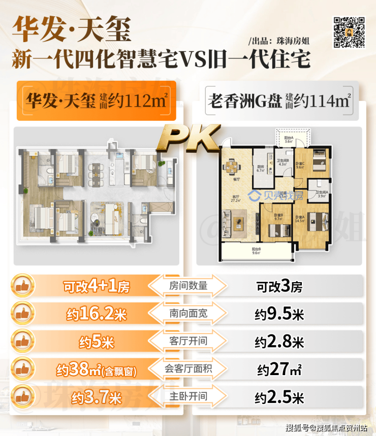 值得一提的是,在珠海主城,实用四房户型起步面积往往超过120㎡,而华发·天玺仅以建面约112㎡,便实现了同等功能体验。