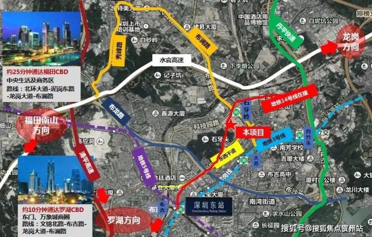 :水官高速、丹平快速直连龙岗中心城、罗湖,自驾便捷