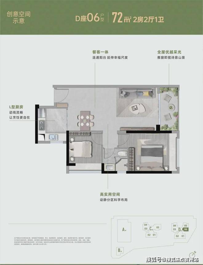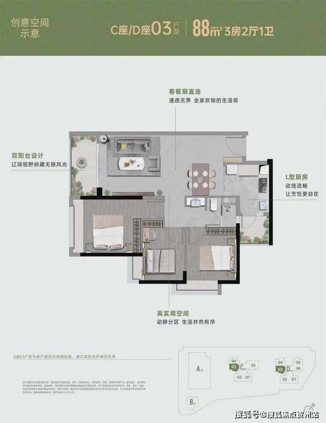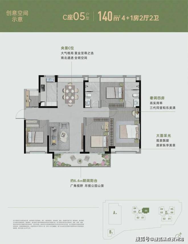 约6.5m南向宽景阳台,环幕视野 四季入怀