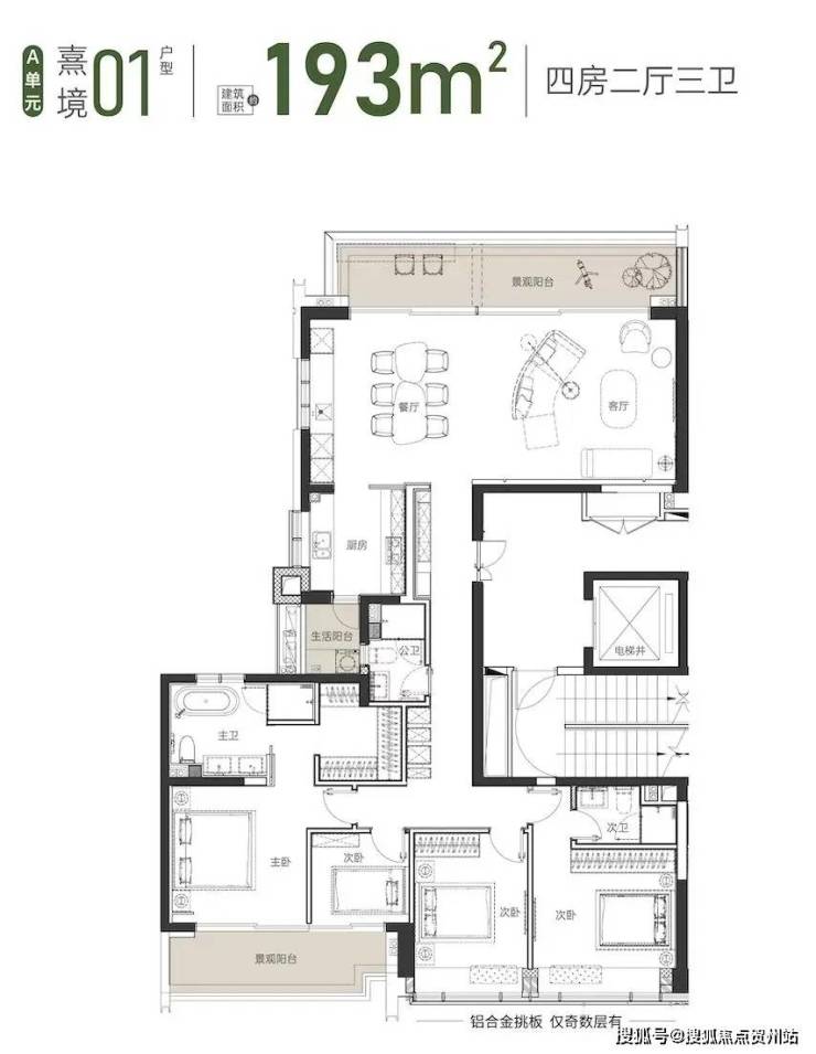 193-204㎡的户型,可以说是建面约268㎡的缩小版。