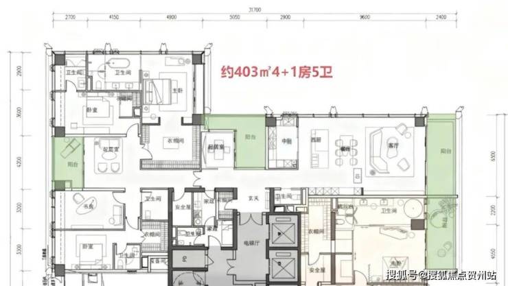 ——高区 40F起(150-200米)是约370-375-403㎡4+1房五卫+家庭厅+家政套间;