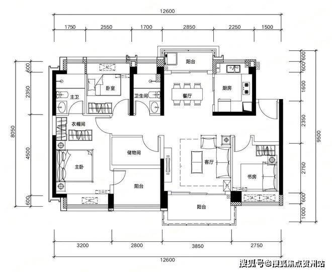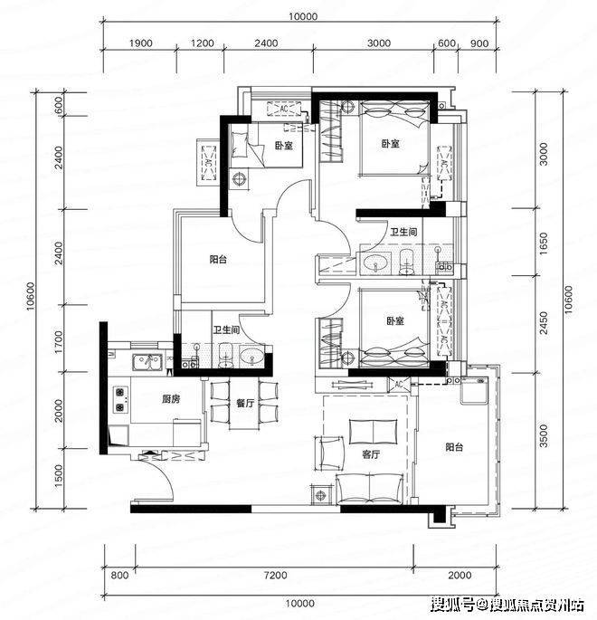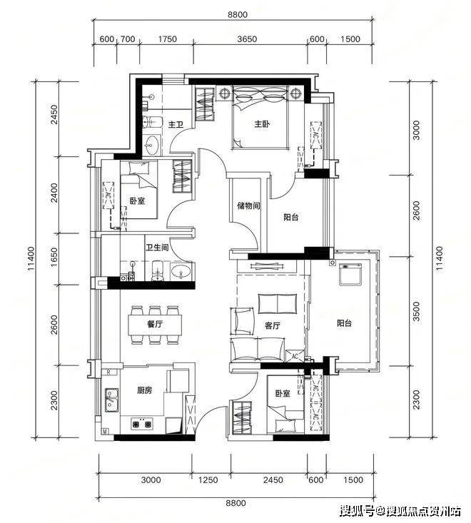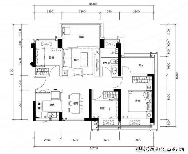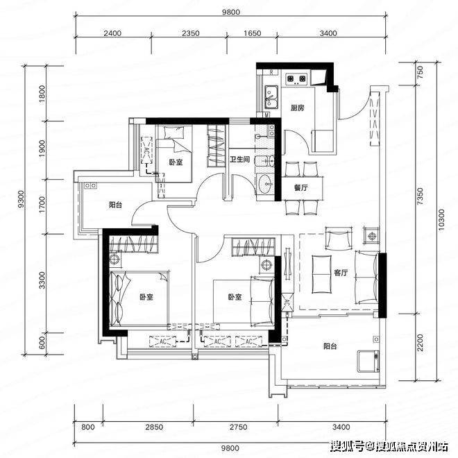 ✅ B06 户型:约109㎡ 阔绰四房两厅两卫: