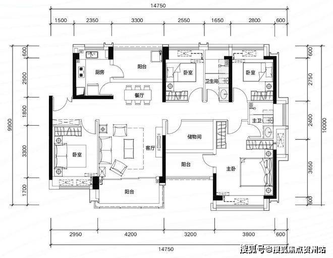 ✅ G02户型:约109㎡ 四房两厅两卫: