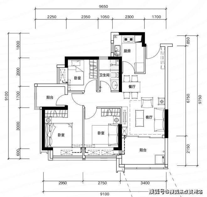 ✅ G03户型:约81㎡ 三房两厅两卫: