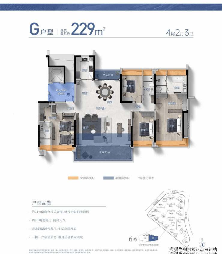 主力户型建面约104–229㎡,涵盖三至四房户型,兼顾改善与高端居住需求: