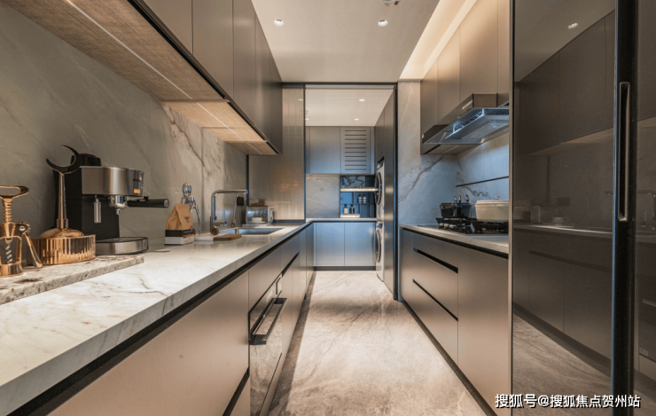 点睛一笔的地方,还在于 西餐岛台的处理——刻意地与中厨拉开距离 ,这种程度的定制,就是为了给在厨房忙碌的人创造更愉悦的情绪场, 让厨房也可以承载家庭社交 。