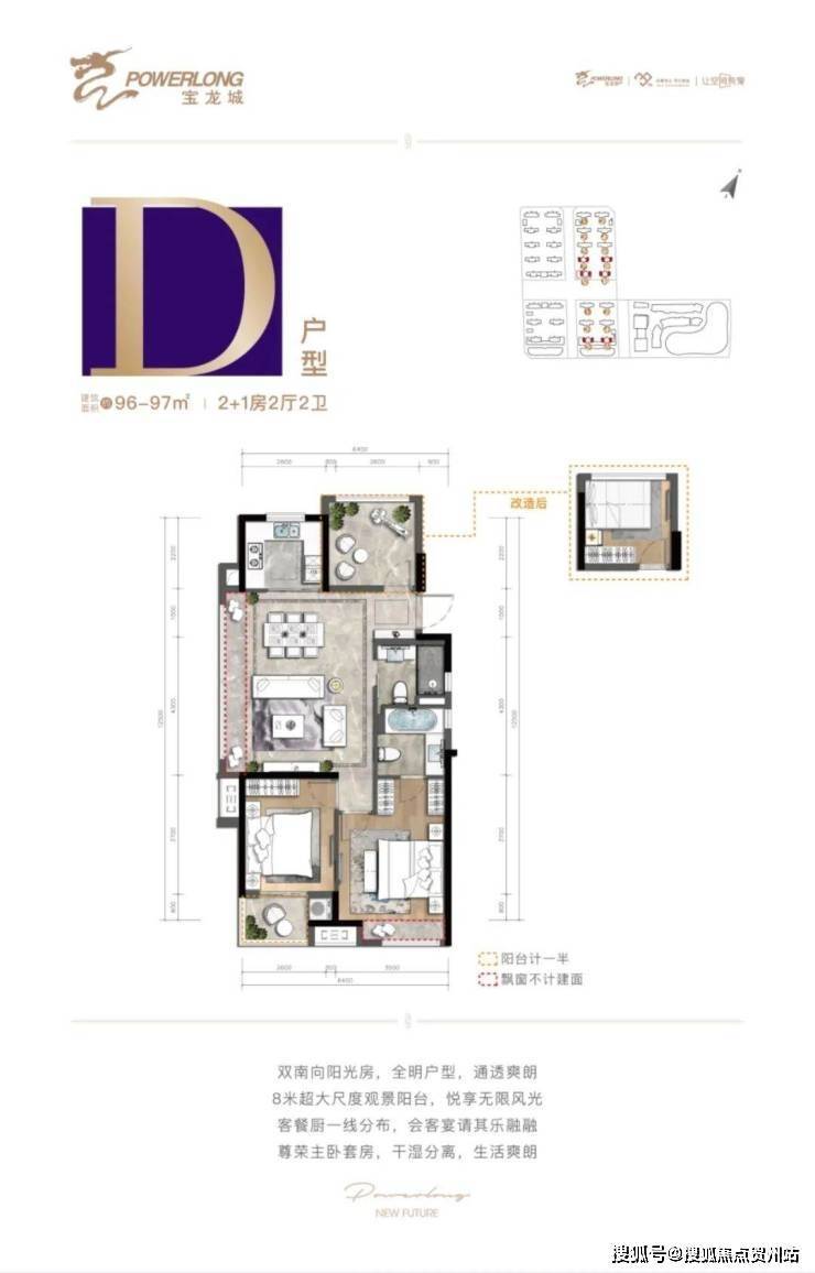 金湾宝龙城占据舒适度宜居版图,拥享繁华生活配套,满足理想人居的必备条件,建面约68-126㎡精奢美宅,方正大气,南北通透,三开间朝南,成为投资自住首选。