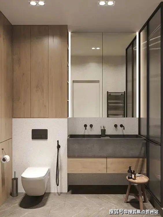 卫浴间使用石材地面,简单大方且防滑,便于孩子、老人行走,提高安全性。双台盆设计、台盆柜体底部留空、全面镜面柜,每处设计都赋予空间达到“1+1>2”的效果。更贴心设计了防溅水开关插座,在潮湿的空间内也能安全用电。