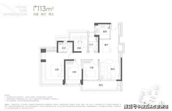 113㎡4房2卫户型: