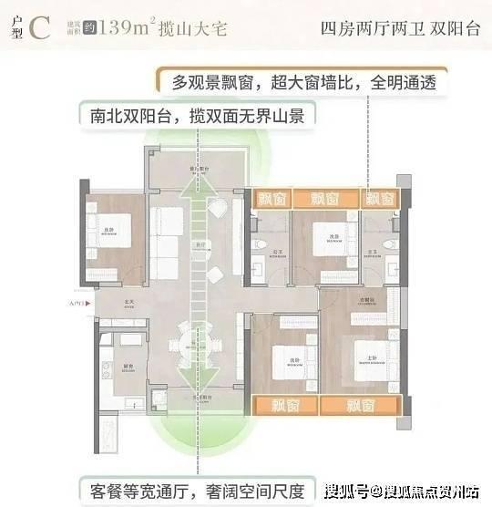户型与得房率:主力户型 98-165㎡三至四房,均精装交付。98㎡三房紧凑实用,118㎡四房双阳台通透,139㎡四房阔绰,165㎡四房双主卧;常规得房率 78%-82%,含飘窗、设备平台等赠送实得率约 88%-92%,2 栋部分户型接近 95%,空间利用率高。