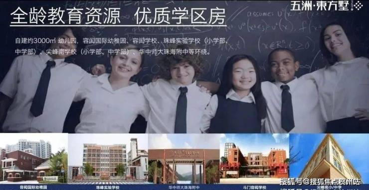 自建约3000㎡幼儿园,容闳国际幼稚园,珠峰实验学校小学部及中学部、斗门第二实验小学、四中、井岸一小、尖峰南小/中学(预计2023年投入使用)。